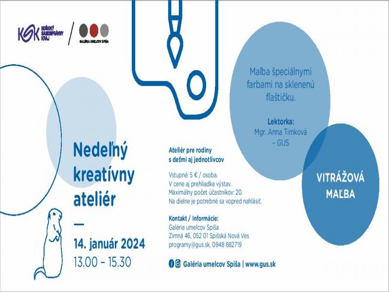Galéria umelcov Spiša, kultúrne zariadenie Košického samosprávneho kraja, pozýva v nedeľu, 14. 1. 2024 v čase 13.00 – 15.30, na prvý výtvarný ateliér v novom roku, určený pre rodiny s deťmi i jednotlivcov.